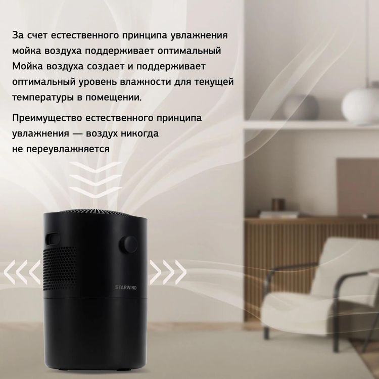 Благодаря естественному (традиционному) принципу увлажнения мойка воздуха STARWIND SAW5521 создает и поддерживает оптимальный уровень влажности для текущей температуры в помещении. Главное преимущество естественного принципа увлажнения - воздух никогда не переувлажняется и нет налета от солей жесткости.